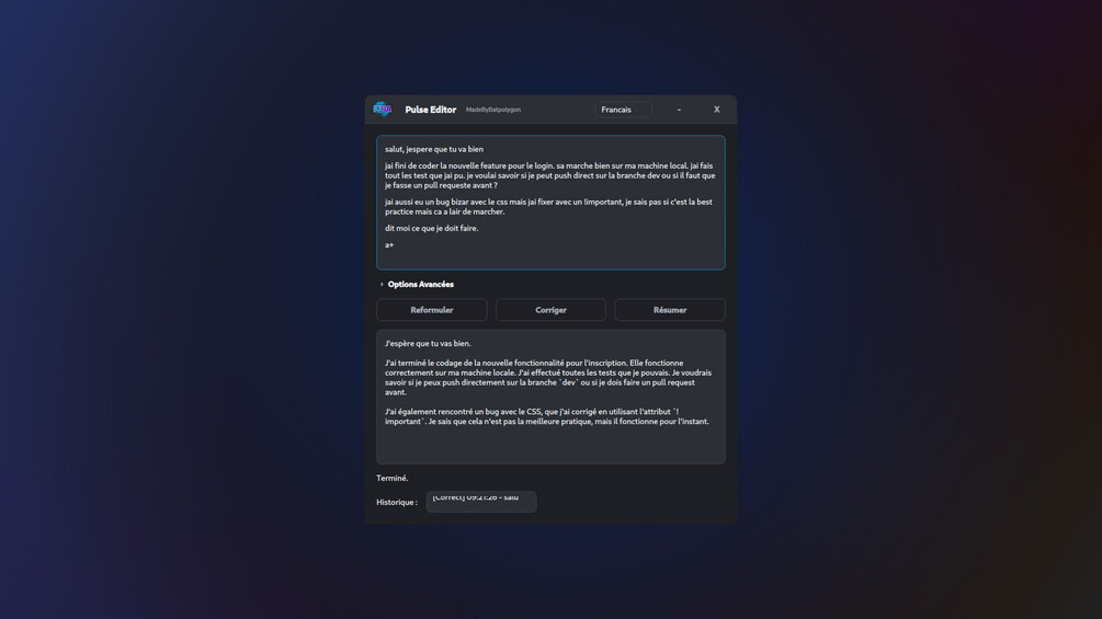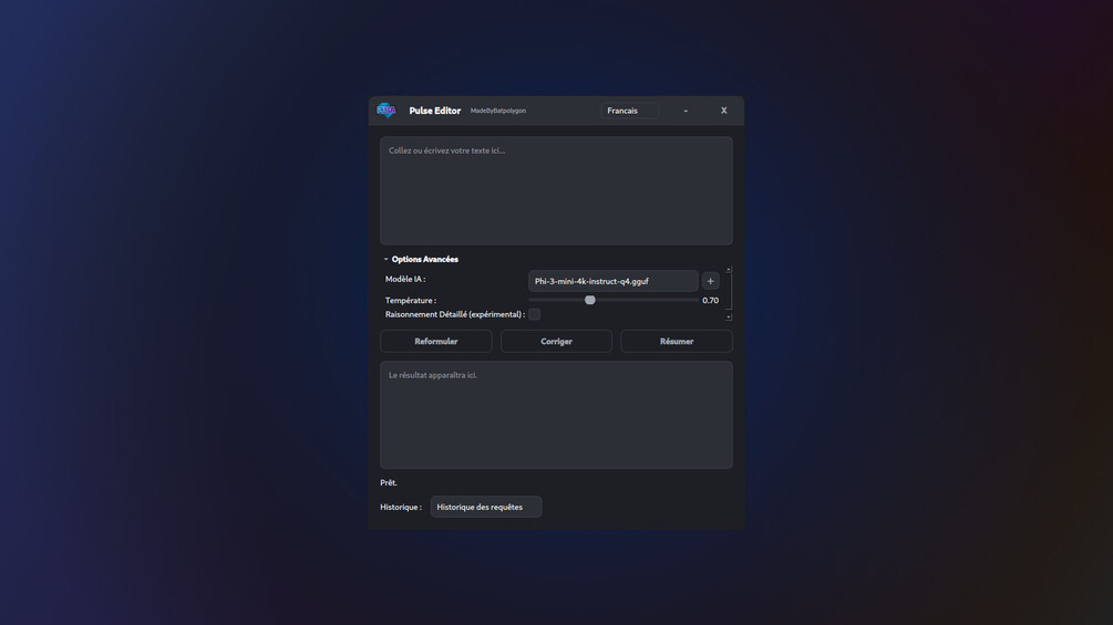 Your minimalist AI text assistant. Instantly correct, rephrase, and summarize any text on your desktop. 100% private & offline.